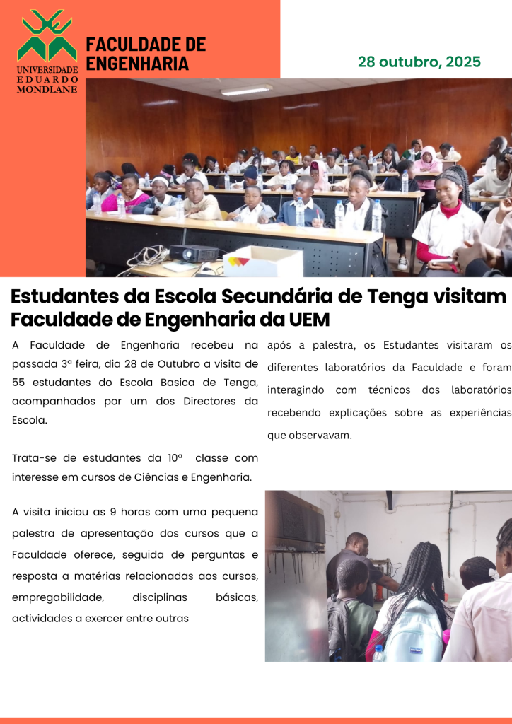 Estudantes da Escola Secundária de Tenga, visitam Faculdade de Engenharia da UEM para uma indução sobre cursos de Engenharia e […]